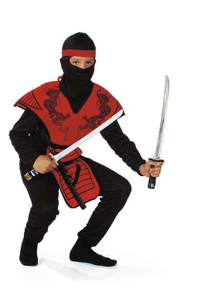 Cool Red Ninja Dragt med bluse, bukser, stofbrynje, bælte, hættemaske og pandebånd