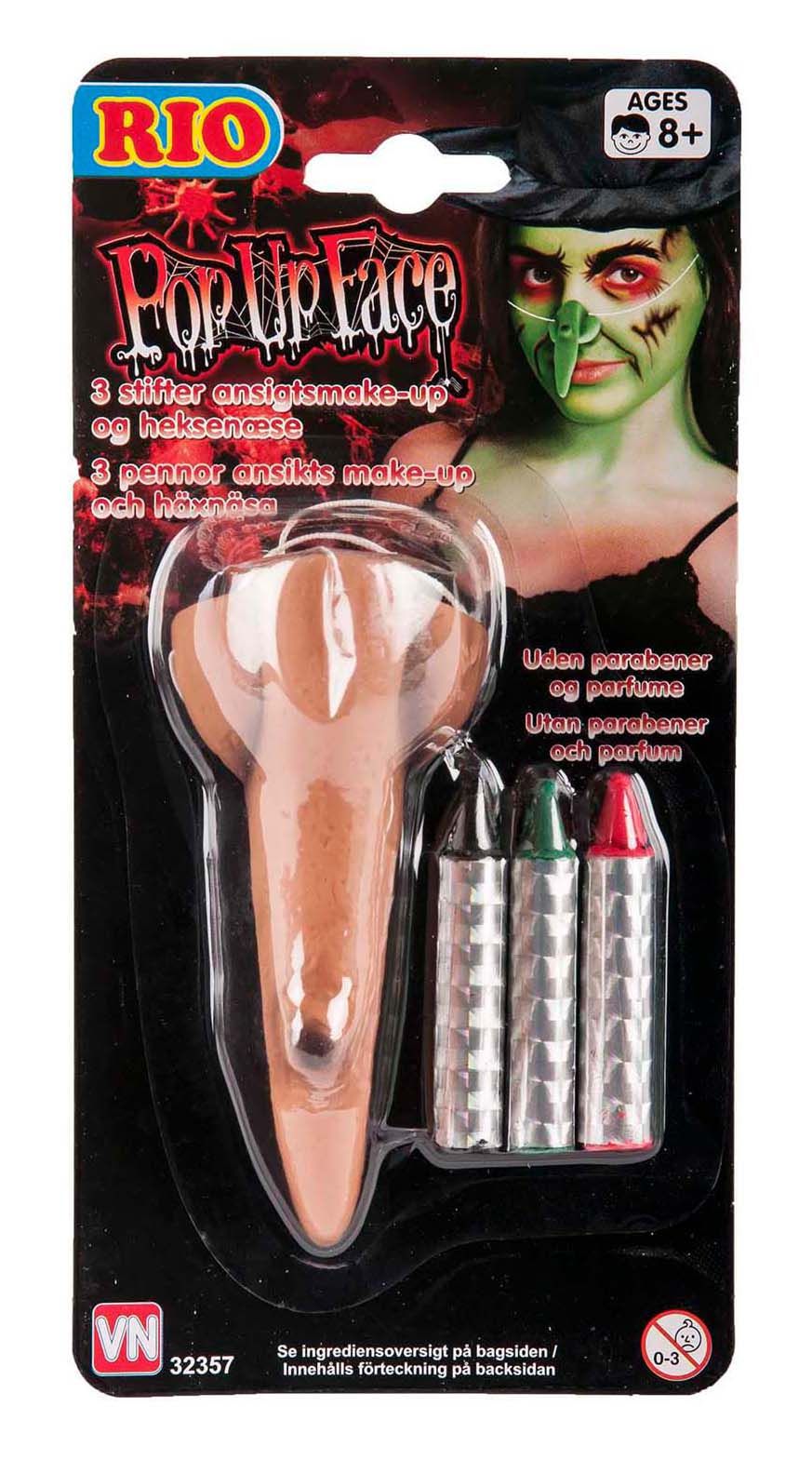 Alder: 8 år+ RIO HEKSENĘSE m3 FARVER Heksemakeupsęt. Med 3 makeupstifter og heksenęse.