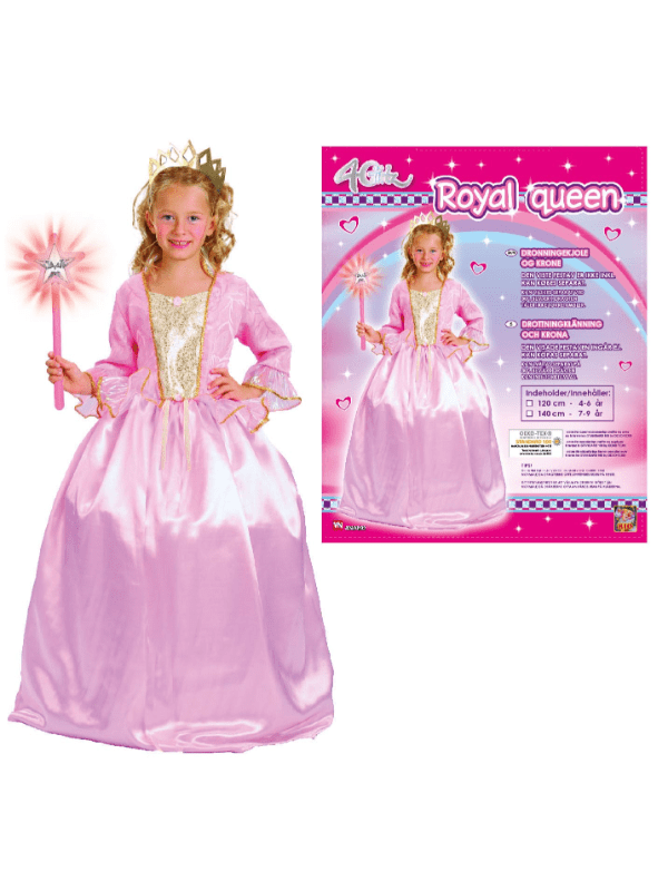 4-Girlz Droningkjole Med Diadem 120 Cm Flot dronning udklędningskjole med et smukt diadem. Kjolen er str 120 cm (4-6 år)