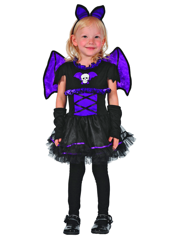 Udklędning, Mini Batkjole Med Vinger 104 Cm. Bliv klędt ud som en mini skeletflagermus med vinger. Den uhyggelig kjole med vinger, hårbųjle og lųse ęrmer. Str 104 cm = 3-4 år