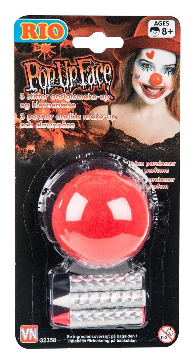 Alder: 8 år+ RIO KLOVNENÆSE m3 FARVER Klovnemakeupsæt. Med 3 makeupstifter og klovnenæse.