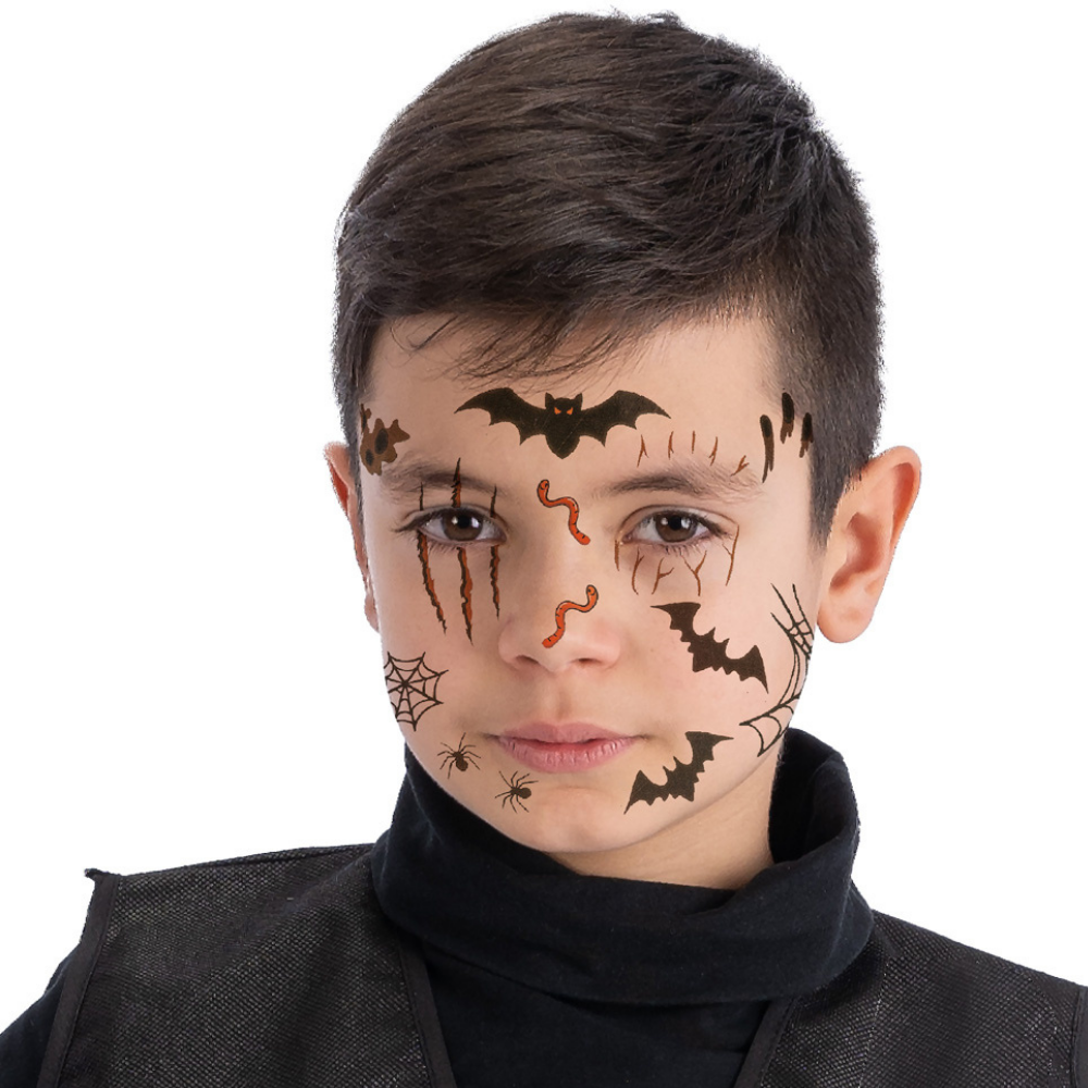 Gør dit karneval endnu mere spændende med vores fantastiske ansigtstatoveringer i flagermusdesign. Disse kreative og farverige tatoveringer er ideelle til børn og voksne, der ønsker at tilføje et ekstra element til deres udklædning. De er lette at anvende blot fjern beskyttelsesfilmen og påfør dem på huden. Tatoveringerne er lavet af hudvenlige materialer, hvilket sikrer, at de ikke irriterer huden, selv når de bæres i flere timer. Flagermusene er perfekte til Halloween, temafester eller enhver festlig anledning, hvor du vil skille dig ud. De kan også bruges til at skabe en sjov og uhyggelig atmosfære, både til børnefødselsdage og karnevaler. Tatoveringerne findes i forskellige størrelser og designs, så du kan mixe og matche for at skabe dit eget unikke udtryk. Med disse ansigtstatoveringer kan du hurtigt forvandle dit look og gøre det mere spændende. De er en sjov og kreativ måde at vise din personlighed på, og de vil uden tvivl vække begejstring hos både børn og voksne. Gør dig klar til at imponere til din næste fest med vores flagermus ansigtstatoveringer!