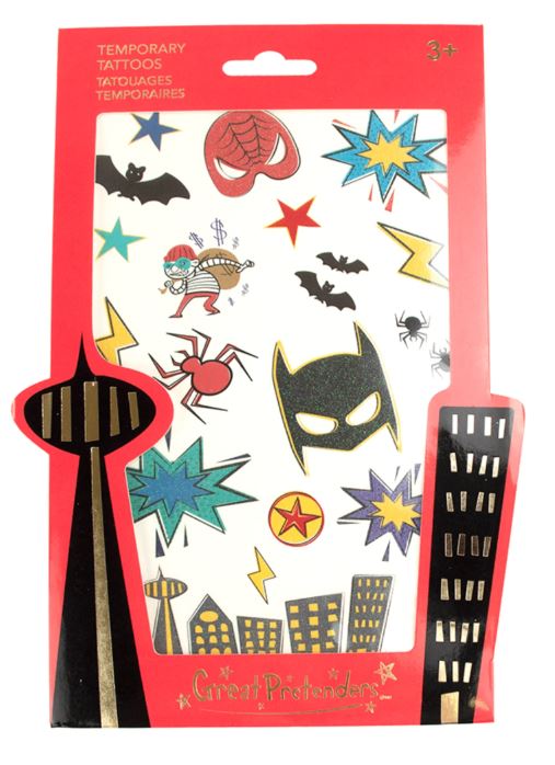 Great Pretenders - Tatoveringer - Superhelte. Er velegnet til Fantasi,Rolleleg og passer til aldersgrupperne: 3 år,4 år,5 år,6 år,7 år,8 år,9 år,10 år