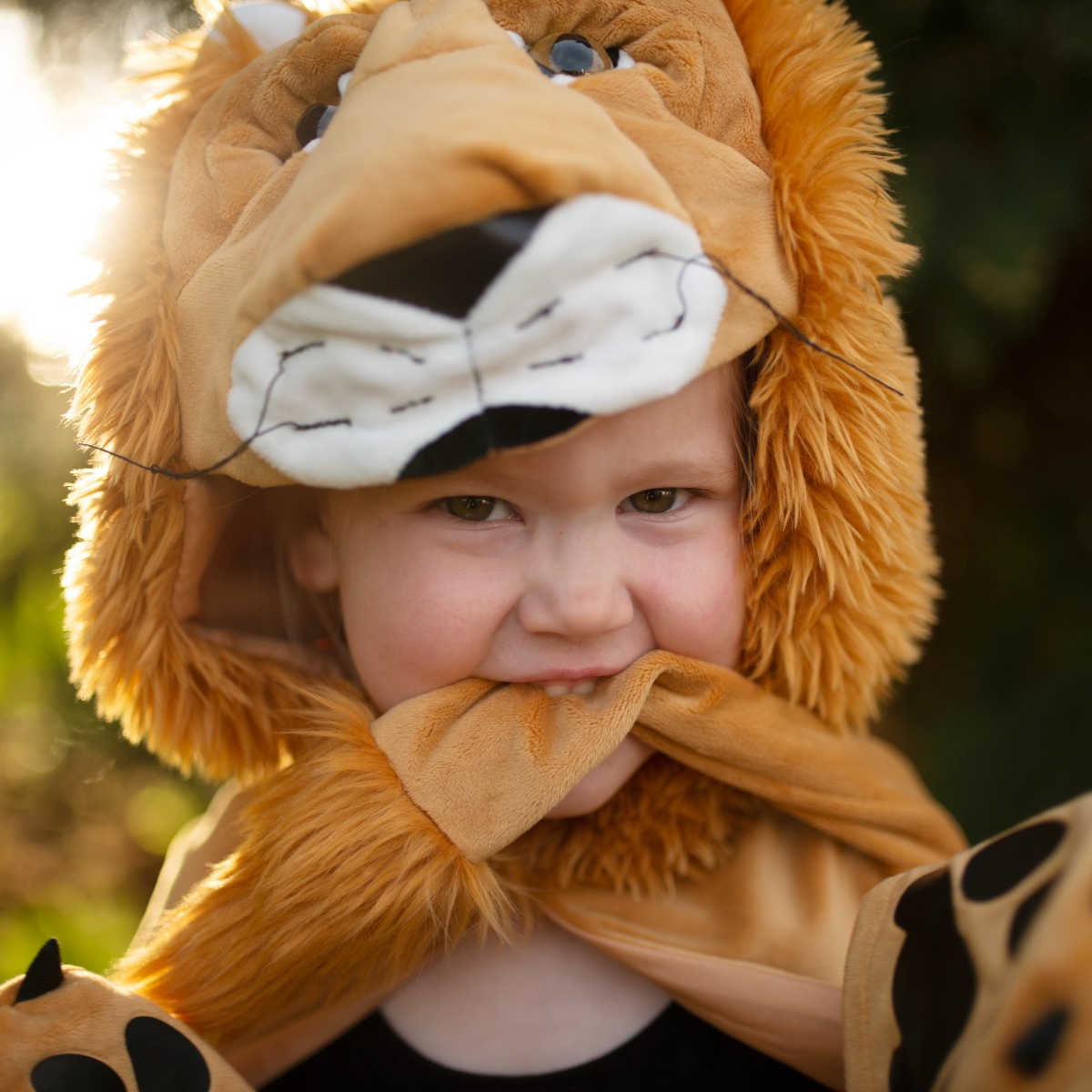 Roaarr, det er lykken af være en farlig løve og få lov at brøle og skræmme lidt med de fæle klør. Især forsigtige og generte børn kan nyde rollelegen som vild og larmende løve.Gennemført lækker dragt med løveansigt og vante-klør i én samlet kappe. Den er hurtig at tage på selv for dit barn. Og til fastelavn i februarkulden er det altså praktisk med udklædning, der passer ud over flyverdragten. Kappen er rummelig og kan bruges i flere år. Så gør det ikke så meget, hvis din tumling under ingen omstændigheder vil klædes ud til den første fastelavn i dagplejen. Du kan bare finde kostumet frem igen senere, hvor det stadig passer fint.