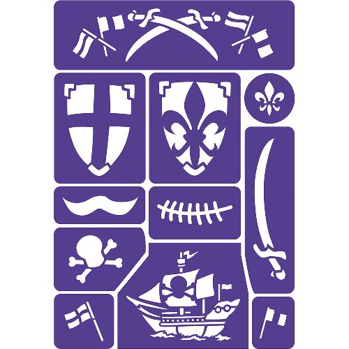 Gør det let for dig selv og dit barn, og brug skabelonen til at lave seje og eventyrlige mønstre på kort tid.Jeg har selv brugt mange timer på at male mine og andre børn, med svingende resultat, da evner, tålmodigheden og tiden ikke helt rakte til det dit barn ønskede sig.Det ønskede motiv på stencilen placeres i ansigtet og ansigtsmaling påføres med en pensel eller svamp. Stencilen er fleksibel og klæbestoffet irriterer ikke dit barns hud. Den kan vaskes af og bruges igen og igenTrick: Tilføj ikke for meget vand, bare fugt din svamp eller pensel ganske let.Anvisninger og illustrationer medfølger.Mål: 21 x 15 cm.Materiale: Selvklæbende vinyl - Blød gummi.Klæbestof: Polyvinylester