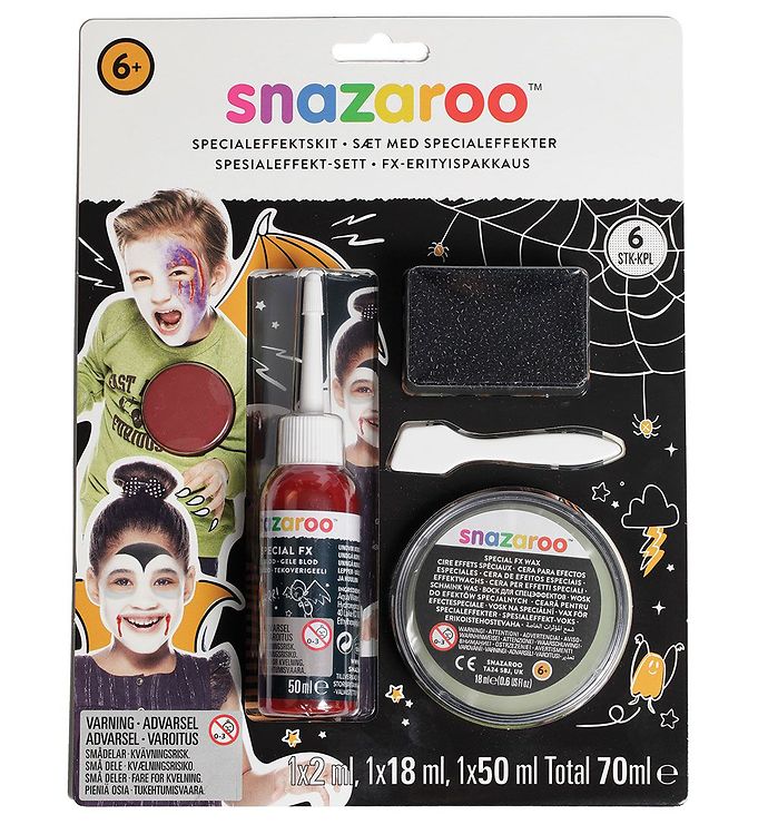 Snazaroo Sæt - 6 Dele - Special Effekter er det perfekte valg for både professionelle og amatører, der ønsker at tage deres ansigtsmaling til næste niveau. Dette sæt indeholder seks forskellige dele, der giver dig mulighed for at skabe unikke og imponerende effekter, uanset om det er til en fest, teaterforestilling eller en særlig anledning. Hver del i sættet er designet til at være let at anvende, hvilket gør det muligt for dig at skabe fantastiske looks uden besvær. Farverne er stærke og holdbare, så du kan være sikker på, at dine kreationer vil holde hele dagen. Snazaroo er kendt for deres høj kvalitet og hudvenlige ingredienser, hvilket betyder, at du kan male både børn og voksne uden bekymringer. Uanset om du vil skabe en skræmmende look til Halloween eller et farverigt design til en fødselsdagsfest, giver dette sæt dig alle de værktøjer, du behøver for at udfolde din kreativitet. Med Snazaroo sæt i hånden kan du hurtigt forvandle dig selv eller andre til noget helt særligt. Glem ikke at få fat i nogle pensler og svampe for at få det bedste resultat. Tag dine special effekter til nye højder med dette fantastiske sæt!