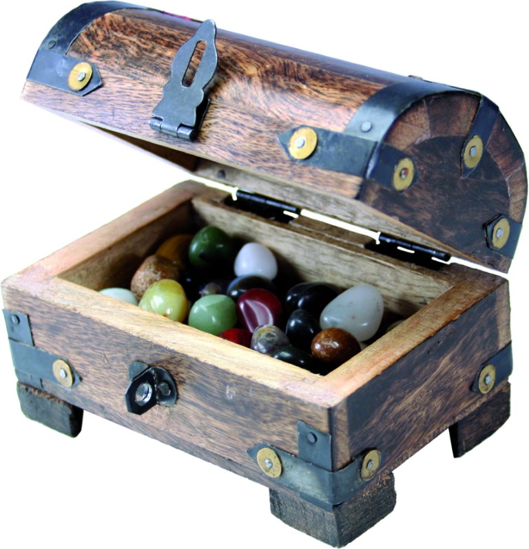 Skattekiste med 150g halvædelsten, 11 x 7 x 9 cm