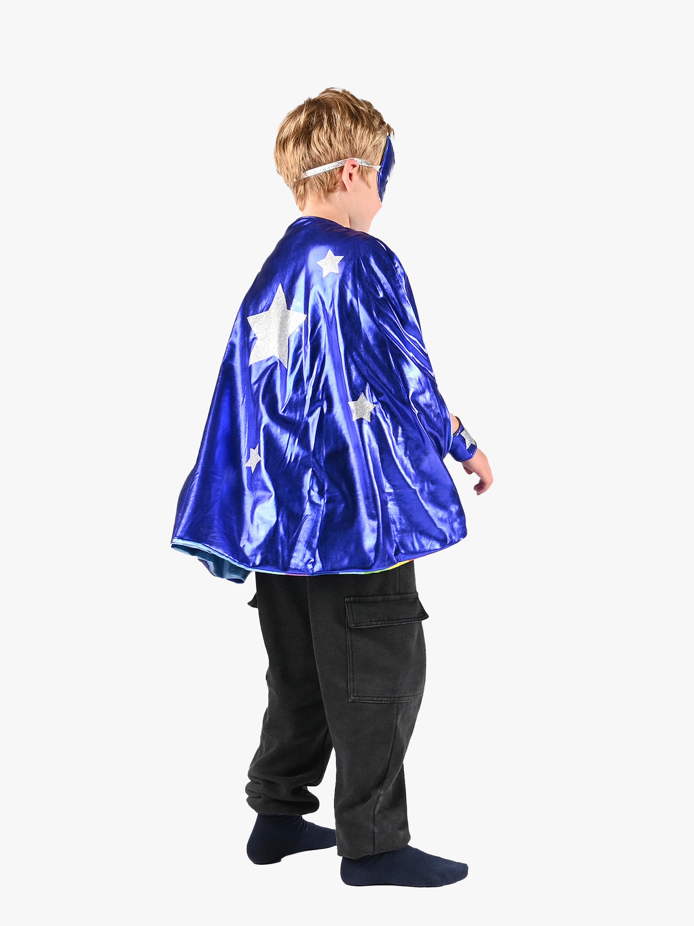 Den Goda Fen Vendbar Kappe med Øjenmaske 98-128 cm, Blå/regnbue