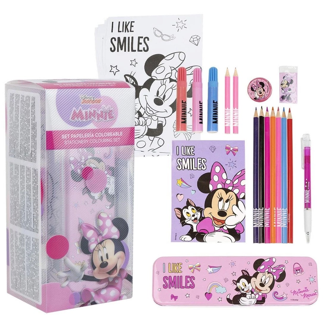 Malesæt fra Disney Minnie Mouse med en masse spændende tilbehør, som dit barn kan udforske. Perfekt til kreative stunder. - Indeholder: 1 notesbog, 5 stenciler, 3 filttusser, 2 blyanter, 7 farveblyanter, 1 kuglepen, 1 viskelæder, 1 blyantspidser, 1 penalhus. - Let at opbevare. - Fungerer lige så godt hjemme som til skolen! - Lav din egen kunst, eller brug en af skabelonerne. - CE-mærket. - Anbefalet alder: Fra 2 år.