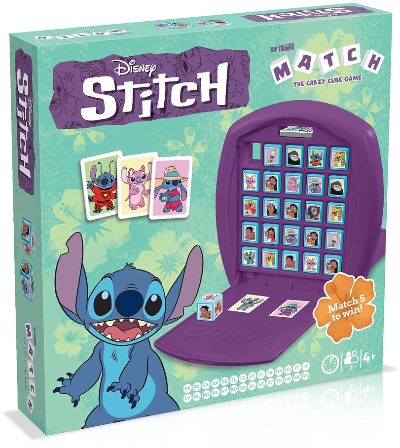 Tempofyldt spil fra Disney Lilo & Stitch med et sjovt tema. Det har 25 terninger med 15 velkendte karakterer. Spillerne skiftes til at skubbe terningerne ind og ud af brættet og forsøge at få fem matchende figurer på rad. Den første, der har 5 på rad, enten vandret, lodret eller diagonalt, vinder spillet. Men pas på, hvis din modstanders Top Trump-kort matcher din række, vinder de i stedet for dig! - Giver mange sjove spiløjeblikke. - Enkle regler. - Praktisk rejsestørrelse. - CE-mærket. - Anbefalet alder: Fra 4 år. - Plastik.