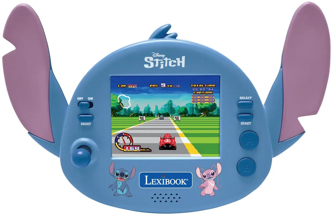 Underholdende spillekonsol fra Disney Stitch med 50 indbyggede spil. Perfekt til mange timers sjov. - 40 klassiske spil og 10 Stitch-spil. - Bevægelseskontrol. - Justerbar lydstyrke. - 7,11 cm LCD-farveskærm. - Let at tage med sig. - CE-mærket. - Anbefalet alder: Fra 3 år. - Batterier medfølger ikke.