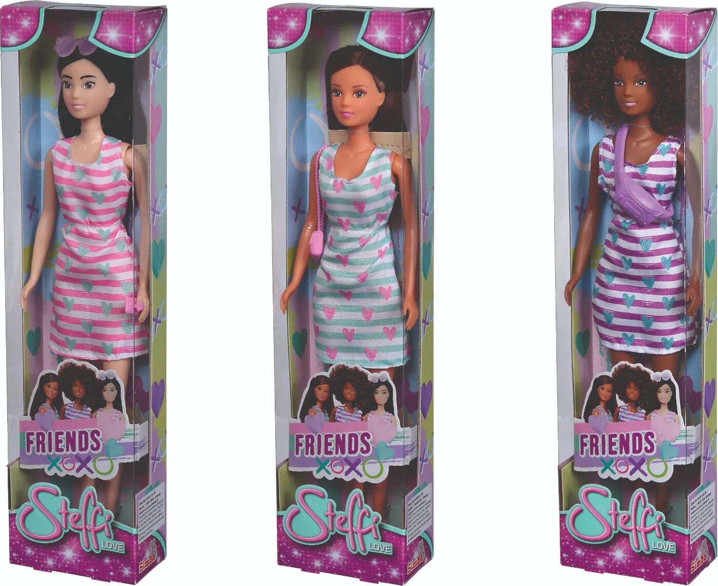 Steffi elsker at hænge ud med sine venner! Steffi Love Friends dukkesortimentet omfatter tre af Steffis bedste venner til den bedste sommer nogensinde! Steffi Love-dukkerne er seje og smarte...
