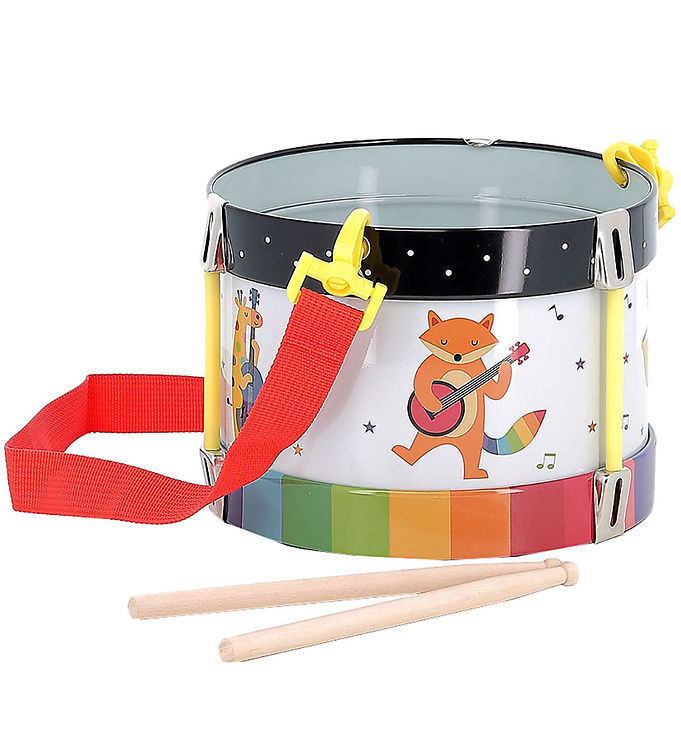 Trommen er fremstillet af høj kvalitet træmateriale, hvilket sikrer holdbarhed og langvarig brug. Dens multifarvede design gør den til et visuelt tiltalende legetøj, der kan integreres i ethvert legeområde. Børn vil elske at slå på trommen og skabe deres egne rytmer, hvilket stimulerer både deres kreativitet og motoriske færdigheder.