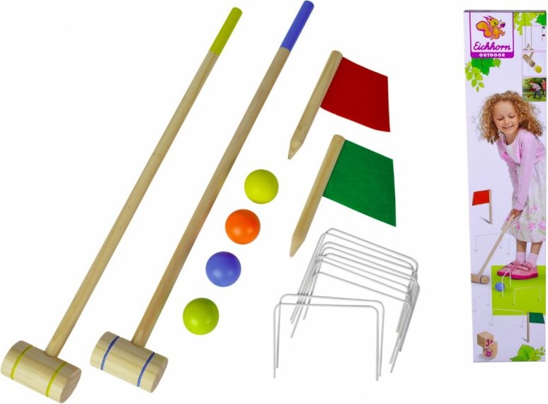 I Eichhorn-Kroketpillet skal du bringe de farvede træbolde gennem små porte i en given rækkefølge. Når boldene passerer igennem den sidste port, har du gennemført spillet. Sættet...