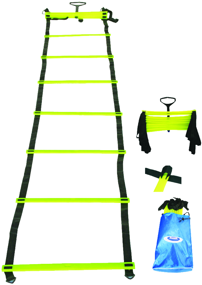 Træning i at flytte futterne lynhurtigt! Hoppe højere! Holde et fast tempo! Læg denne træningsstige på græsset og sæt i gang - den er 4 m lang og er 40 cm bred. Lad spillerne eller spurterne stille sig klar og så ræse henover trinene, fx som en del af en opvarmnings- eller forhindringsbane. I kan også løbe baglæns eller sidelæns. Måske skal gymnasterne tage stige-turen i håndstand?Den transporteres og opbevares nemt i den medfølgende taske.