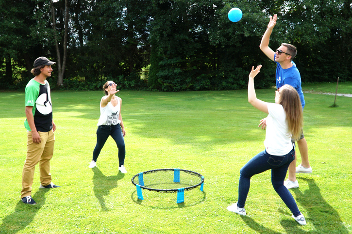 Roundnet er et nyt sjovt og hurtigt spil, som kan spilles i haven, på stranden, i sommerhuset eller andre steder.Spillets regler:To hold på 2 spillere konkurrerer mod hinanden. Alle er jævnt fordelt om nettet. For at få point, bliver bolden slået med håndfladen ned på nettet, så den hopper op igen. Det modsatte hold skal nu ramme bolden og må ramme den op til tre gange, før den skal slås tilbage i nettet.Målet er, at slå bolden ned i nettet på en måde, så modstanderne ikke kan nå at ramme den, før den falder til jorden. Med korte og lange afleveringer, falske angreb og andre tricks forsøger du at lokke din modstander væk. Hvis holdet ikke formår at returnere bolden, og bolden falder på jorden, modtager det andet holdet 1 point.Sættet indeholder:Komplet roundnet (Ø 90cm, ca. 20 cm højt).1 træningsbold (Ø 11 cm).2 konkurrencebolde (Ø 9 cm).Kuglepumpe med nål og en netpose til stuvning og transporterer.Opbevaringstaske.Pust boldene op med maksimalt 0,5 bar.