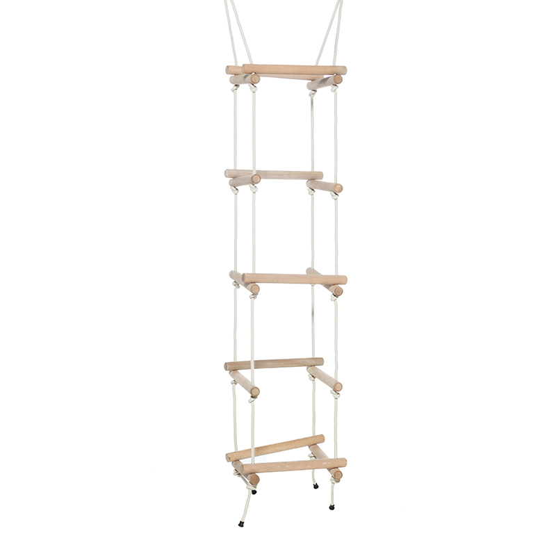 Denne firesidede rebstige giver dit barn endnu flere muligheder for at klatre og lege. Dit barn kan klatre både indvendigt og udvendigt på stigen, hvilket udfordrer balance, koordination og styrke. De robuste trærundstokke har en god diameter, så små hænder kan få et sikkert greb. Rebene kan justeres i højden, så stigen passer til gyngestativer op til 250 cm.Specifikationer:4-sidet klatrestige for ekstra lege- og motorikudfordringerRundstokke af behandlet hårdt træ, Ø 35 mmJusterbare reb til ophæng op til 250 cmBeige flettet reb, blødt og behageligt at holde vedSlidstærke materialer, der tåler udendørs brug - ikke godkendt til brug indendørs Plastikforstærkninger ved svejsningerRing i galvaniseret stål til ophængMaksimal belastning på 70 kg.