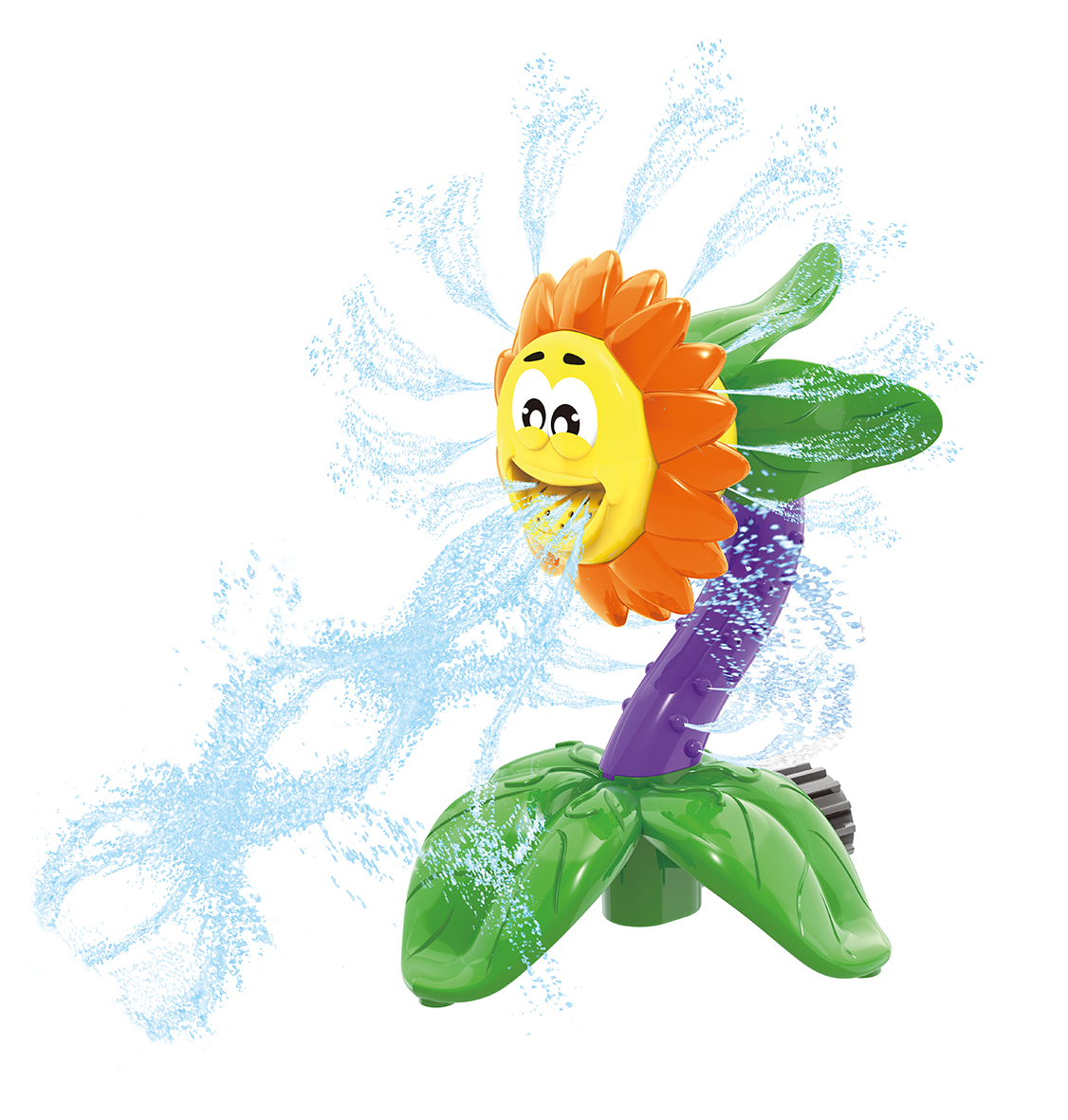 Trænger I til et herligt, koldt gys, der sætter gang i både følesans og lattermuskler?Denne uskyldigt udseende solsikke er klar til at sprøjte med vand i nærmest alle retninger ud fra blomsterbladene - og ud af munden! Vandet kan sprøjte op til 2-2,5 meter væk.Det kolde gys giver dit barns følesans en kærkommen forskrækkelse på en varm dag, som vil sende al dvaskhed på porten og gøre det sjovere at nyde resten af de varme dage. Nem at tilslutte til standard haveslanger.