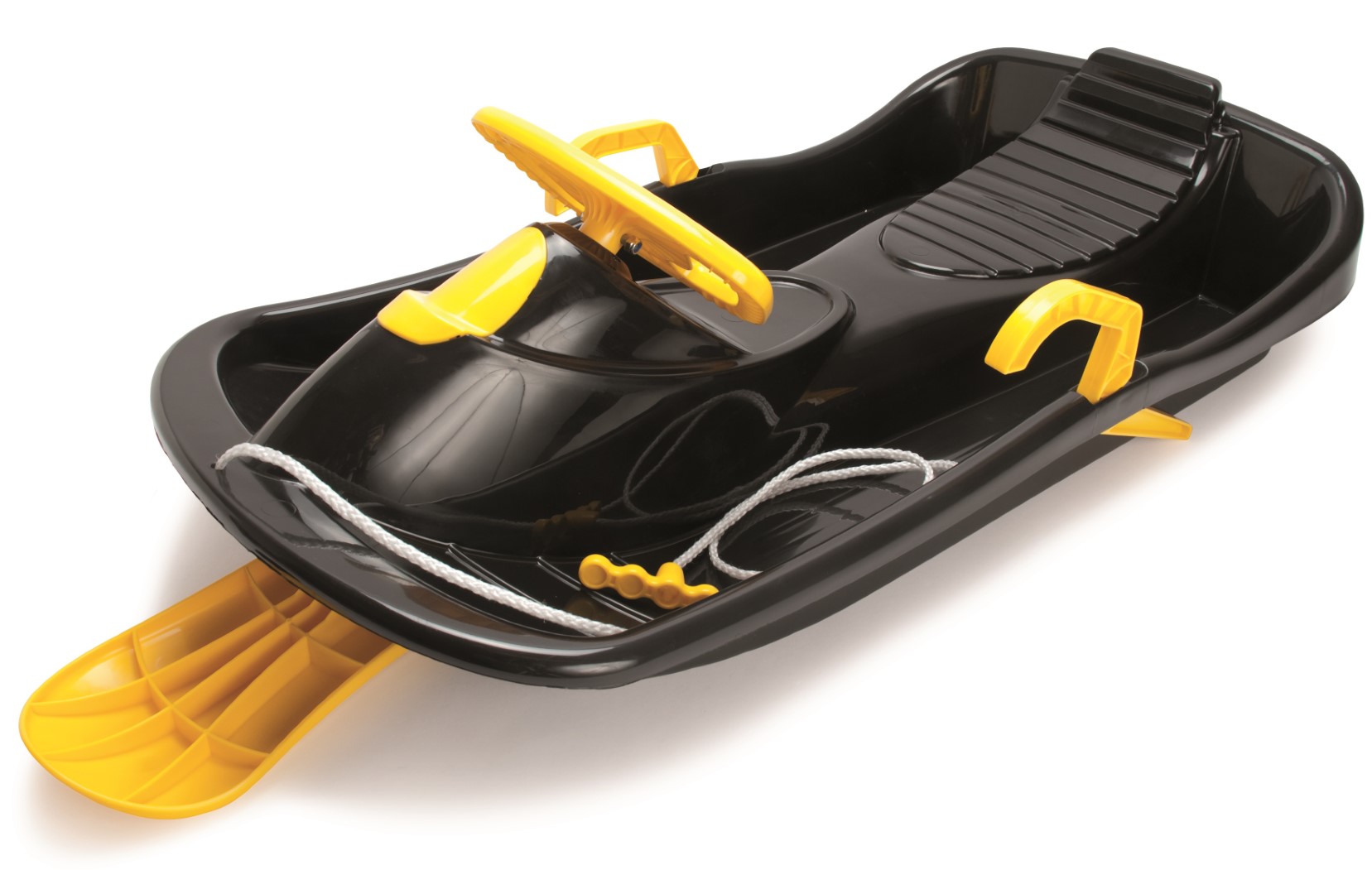 Bobslæde i stærkt materiale, med bremser, rat med styrefunktion og en bred siddeflade. Nem at trække med den påmonterede snor med håndtag. Gør sneen meget sjovere! Produkter er designet med fokus på kvalitet, sikkerhed og bæredygtighed Størrelse: 94 x 4