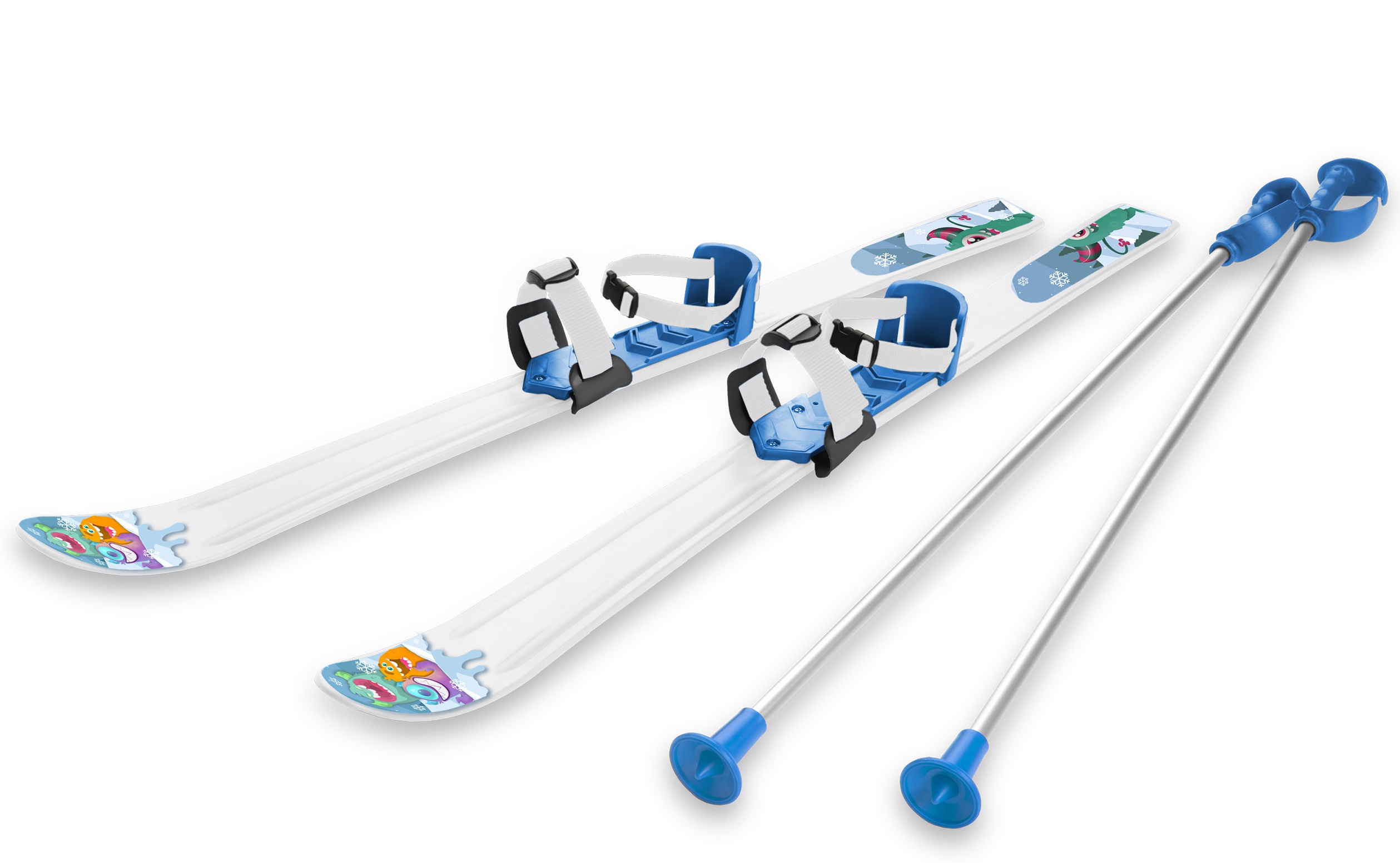 Ski til børn 70 cm med skistave – Hvid/Blå Disse børneski er designet specielt til de mindste skiløbere, der skal tage deres første ture i sneen. Sættet indeholder et par ski med justerbare remme og to matchende skistave. Skiens længde giver god sta