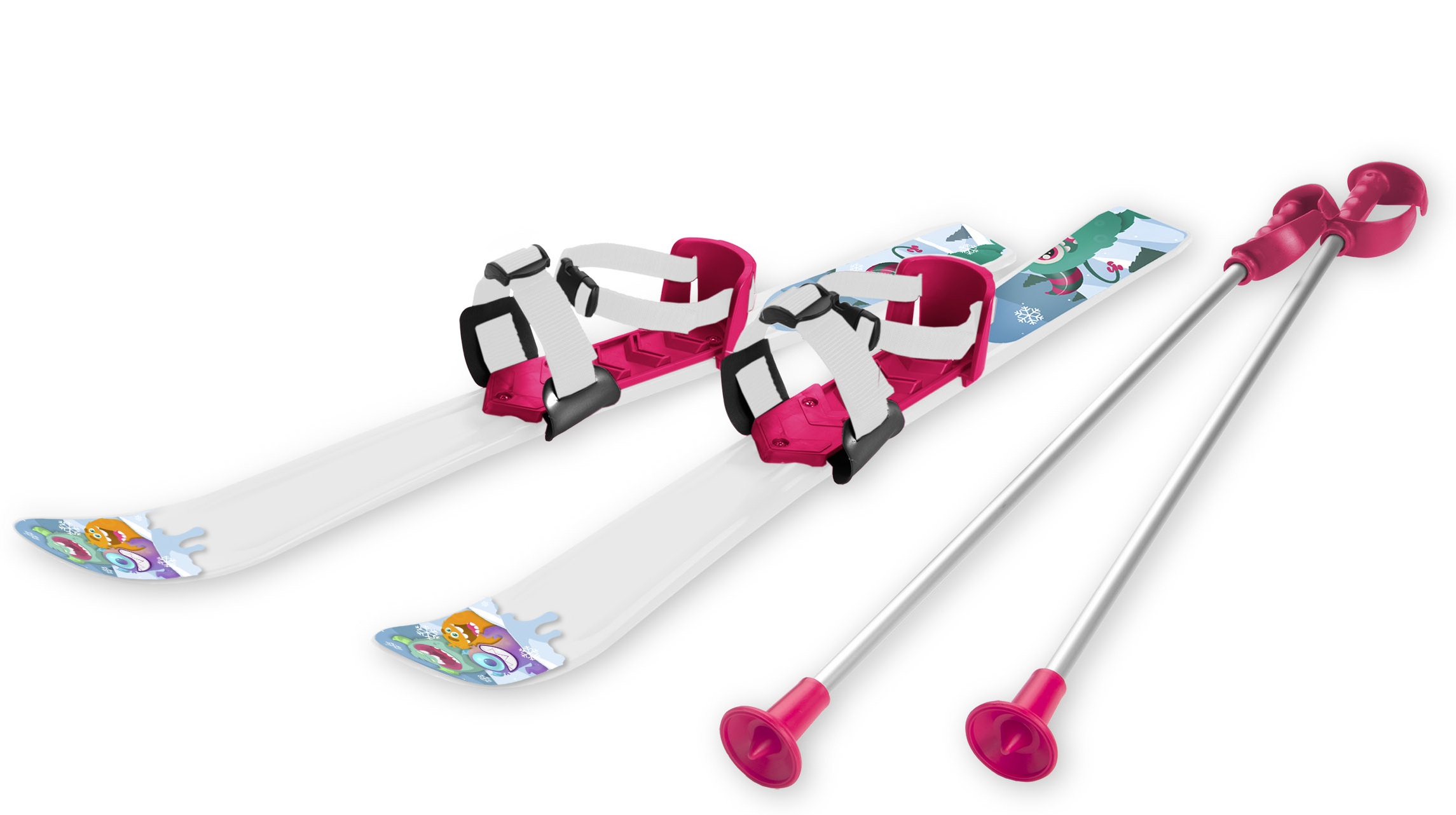 Ski til børn 70 cm med skistave – Hvid/Lilla Disse børneski er designet specielt til de mindste skiløbere, der skal tage deres første ture i sneen. Sættet indeholder et par ski med justerbare remme og to matchende skistave. Skiens længde giver god s