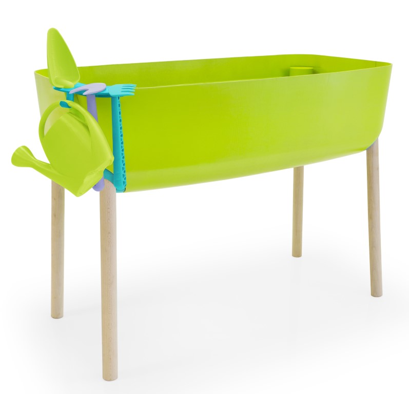 Med dette smarte lille højbed, kan alle være med når der skal dyrkes urter. Kombinationen af plastik og træben får det til at se naturligt, miljøvenligt og praktisk ud på samme tid. Træbenene giver styrke og stabilitet, så det kan holde til trykket fra jo