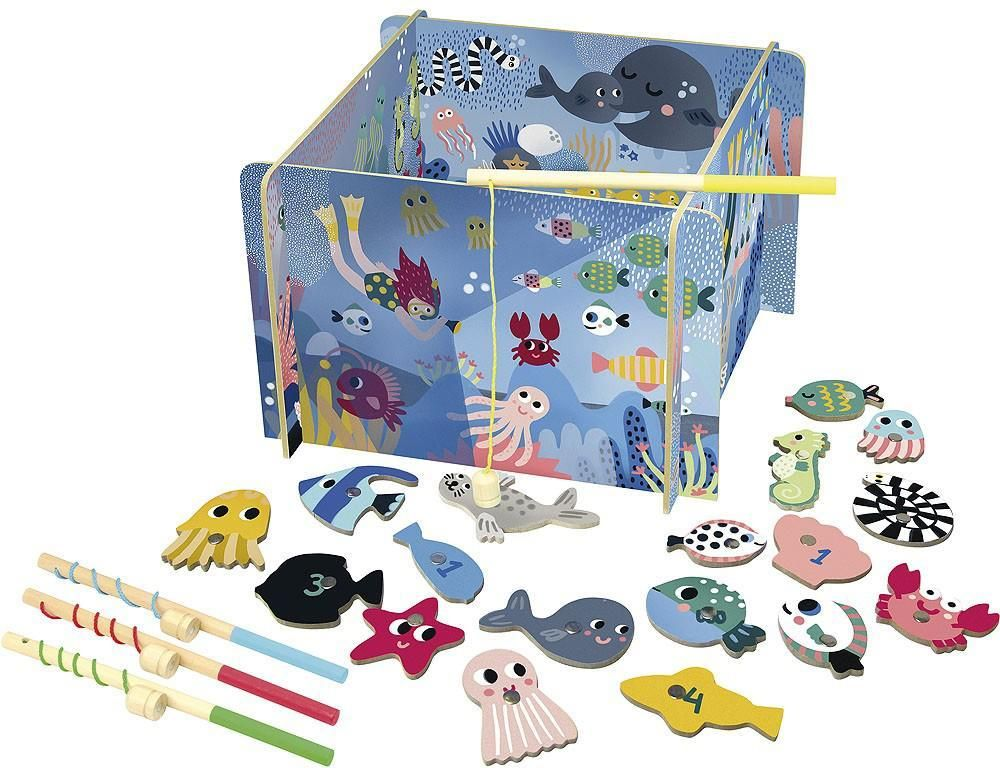 • Engagerende design: Spillet inkluderer farverige fisk og en magnetisk fiskestang, der gør det sjovt for børn at fange fiskene.