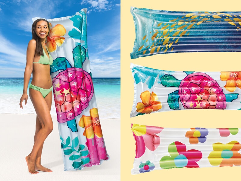 Er du klar til solrige dage og skvulpende bølger? Med denne oppustelige bademadras fra Intex bliver hver svømmetur et eventyr! Bademadrassen sælges usorteret, så det bliver en overraskelse, hvilket mønster du får!