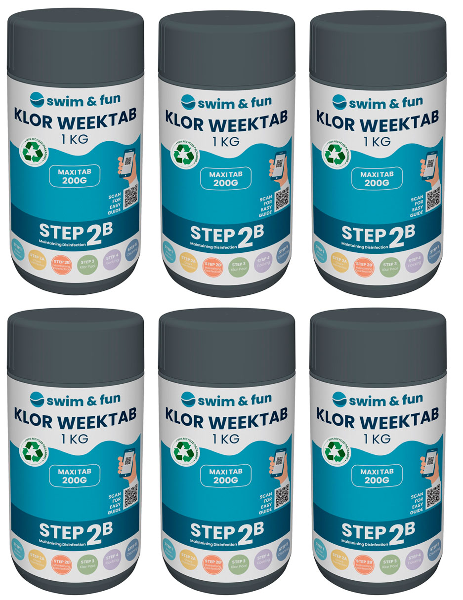 Swim & Fun Klor WeekTab 200g tabletter, 6 kg (6 x 1 KG)