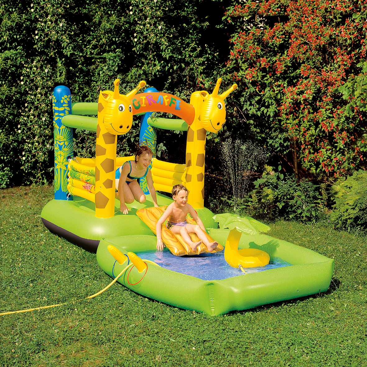 For mange børn er det simpelthen drømmen at have sin egen hoppeborg. Wehncke's hoppeborg med badebassin i form af en giraf er den perfekte tilføjelse til haven eller legepladsen. Denne farverige hoppeborg tilbyder timevis af sjov og underholdning for børn i alle aldre.