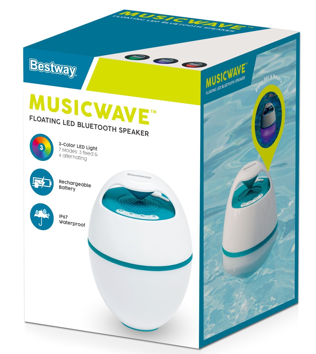 Lad rytmen flyde (og flyde!) med Bestway® MusicWave™ Floating LED Bluetooth Speaker. Med denne kraftfulde, vandtætte højttaler, der spiller dine yndlingsmelodier, kan du nyde op til 6 timers uafbrudt musik, mens du slapper af ved poolen. Denne Bluet