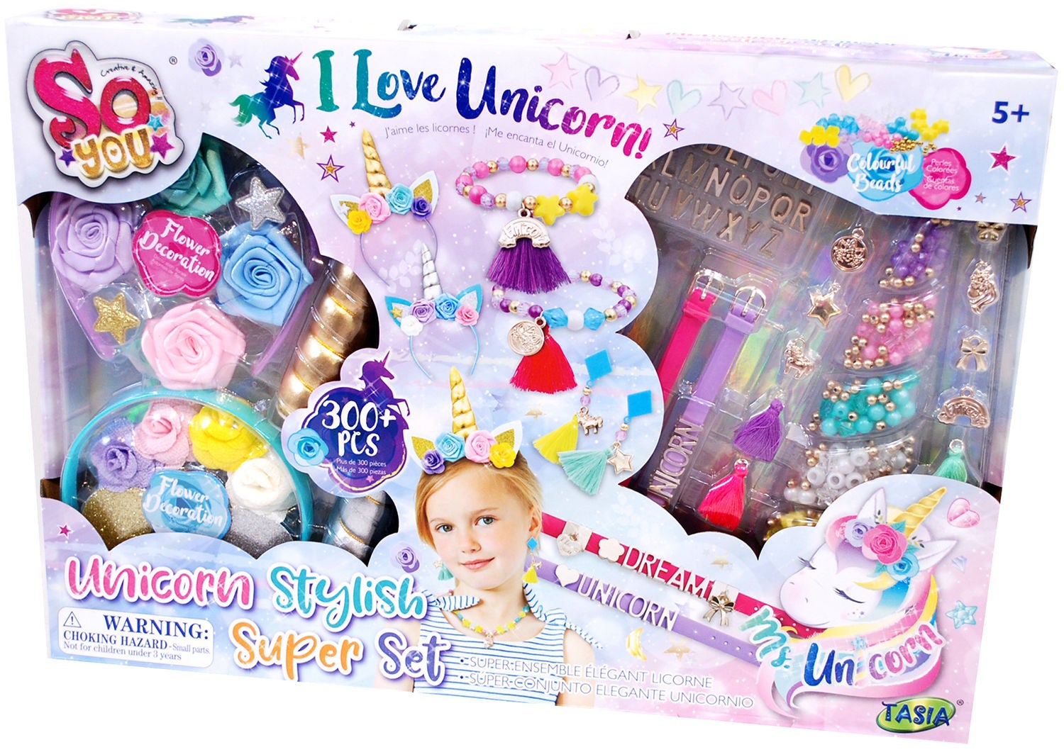 Lav dine egne smykker og diadem med dette farverige enhjørningsperlesæt fra So Breads. Det sjove kreasæt indeholder massevis af fine perler, farverige kæder og vedhæng. Sættet indeholder desuden flere fine dekorationer, som kan bruges til at pynte enhjørningsdiademet med. Lav et armbånd til dig selv, eller måske to venskabsarmbånd til dig og din bedste ven! Der medfølger flere bogstavsperler, som du let kan kombinere til navne og ord efter eget valg. Lad kreativiteten få frit løb! Anbefalet alder: Fra 5 år.