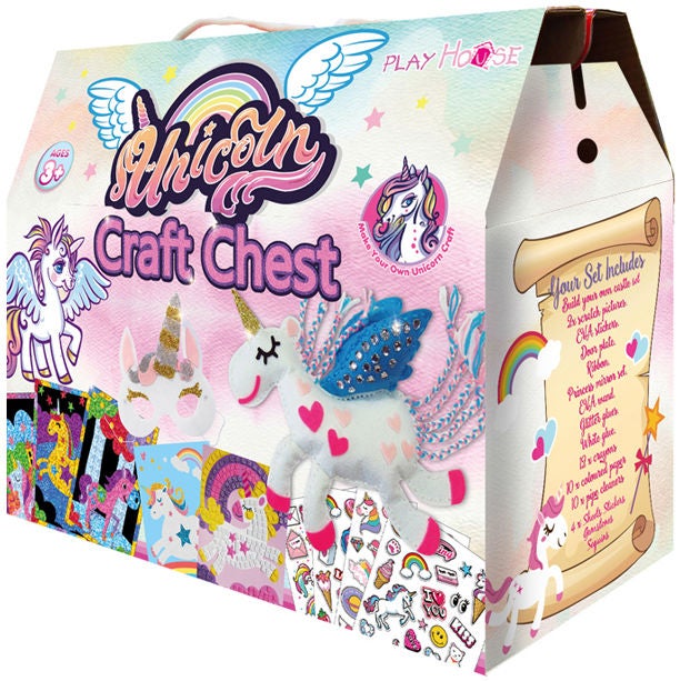 Et kreativt aktivitetssæt fra Suntoy med et enhjørninge-tema. Dette sæt indeholder masser af ting til kreative aktiviteter, så som garn, guld- og sølv-pulver, lim, filt, klistermærker og meget mere. Anbefalet alder: Fra 3 år.