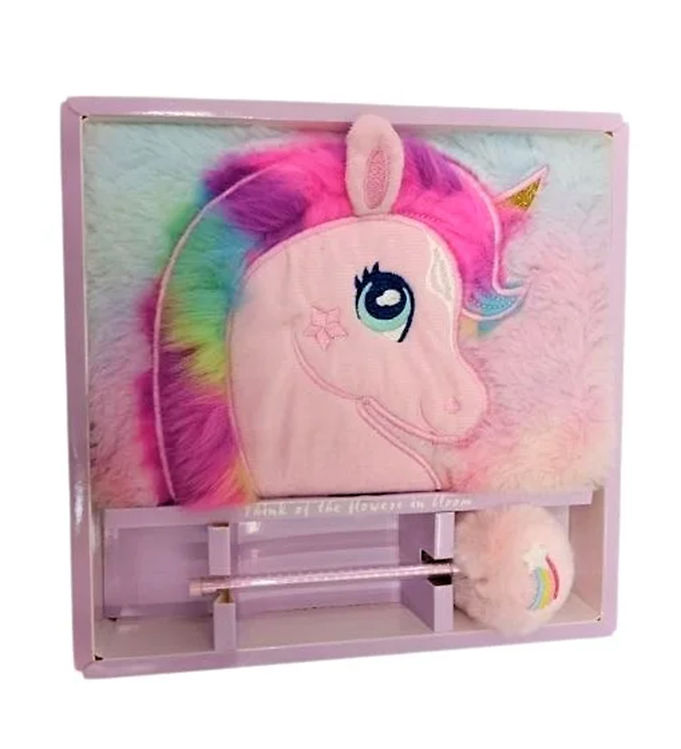 Hot Focus Notesbog m. Pompon-Pen - Enhjørning Plys