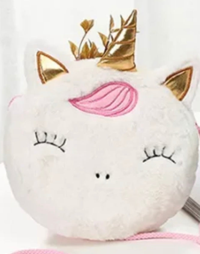 MillaVanilla Enhjørning Plys Taske - Hvid "Velkommen til den fortryllende verden af MillaVanilla plystasker! Disse søde tasker er skabt til at bringe smil på læberne hos både børn og barnlige sjæle med deres magiske unicorn design. Tasken er lavet af