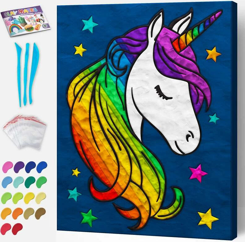 Clay Painting På Lærred Sæt - Enhjørning - 30x40 Cm - Splat