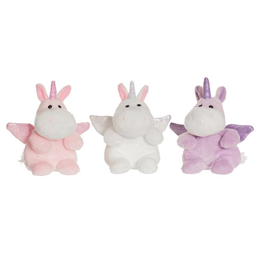 Teddykompaniet Enhjørning bean bag Teddykompaniet Enhjørning bean bag er skønne bamser til børn. De kommer i 3 forskellige farver, hvid, lilla og rosa. De har fyld i enden, så de selv kan sidde op. Disse enhjørning bamser har små glitrende vinger, og e