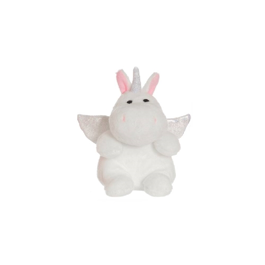Teddykompaniet Enhjørning bean bag Teddykompaniet Enhjørning bean bag er en skøn bamse til børn. Den ses her i en flot hvid farve. Den har fyld i enden, så den selv kan sidde op. Denne enhjørning bamse har små glitrende vinger, og et flot horn på h