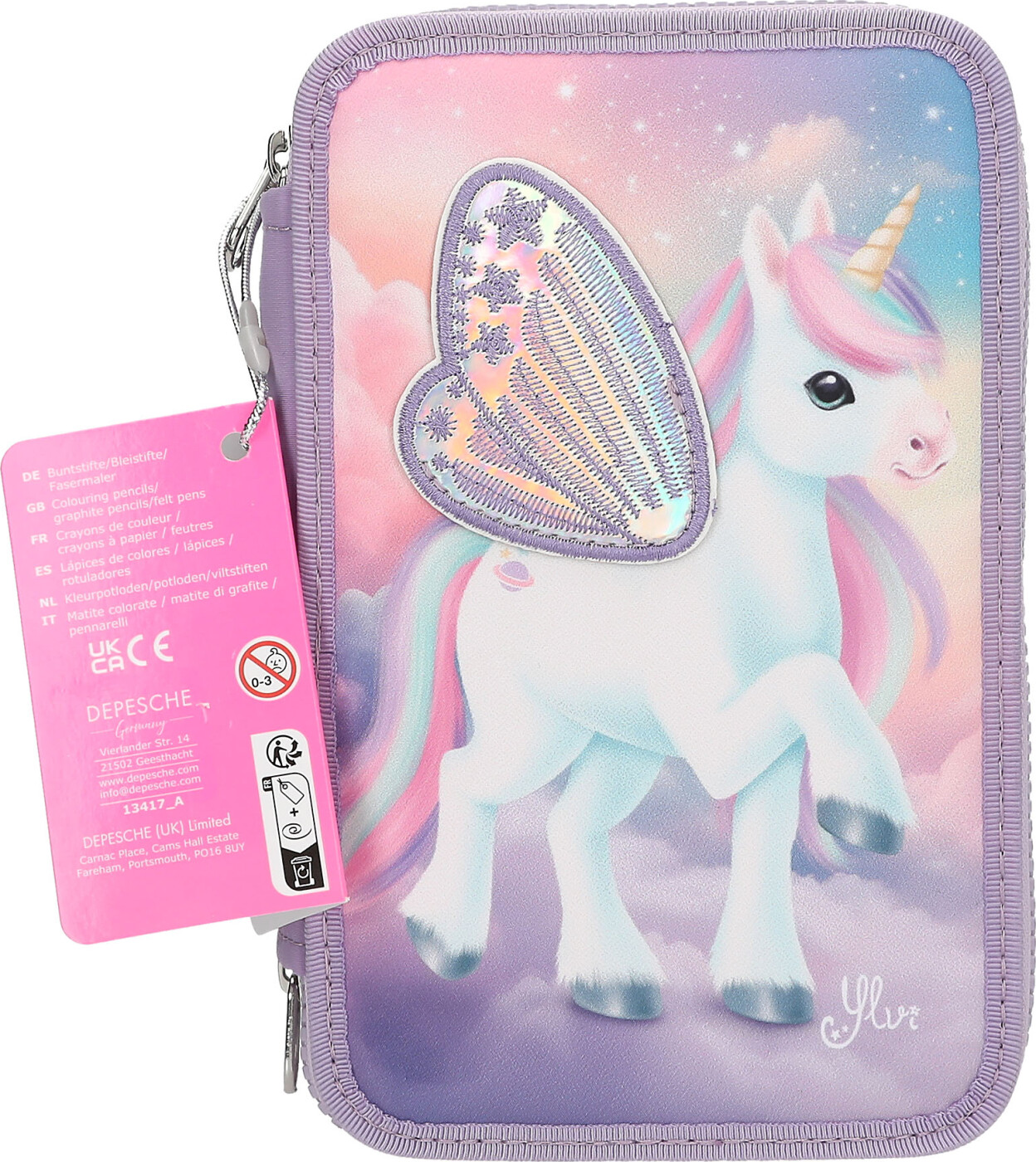 Ylvi - Penalhus Med Indhold - 3 Rum - Enhjørning - Lilla