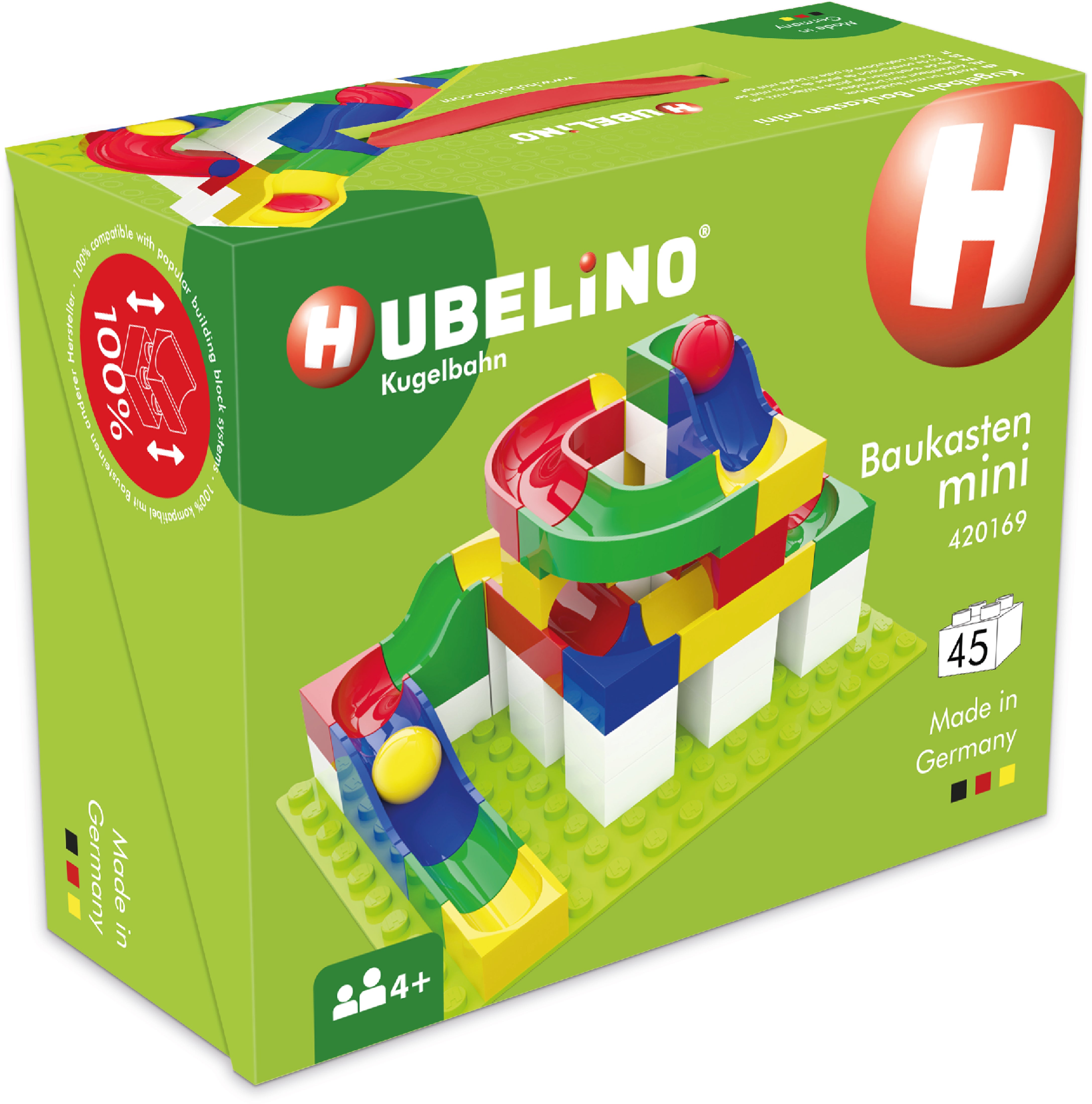Lille byggesæt, der indeholder alt, du har brug for til at bygge din første kompakte kuglebane fra Hubelino. Hubelino kombinerer kuglebanedele med klassiske byggeklodser. Sættet indeholder 45 dele og er perfekt for nybegyndere. Du får en byggeplade, byggeklodser, render, kugler og en manual. Byggesættet leveres i en kraftig kartonæske med håndtag, så den er let at bære. Anbefalet alder: Fra 4 år