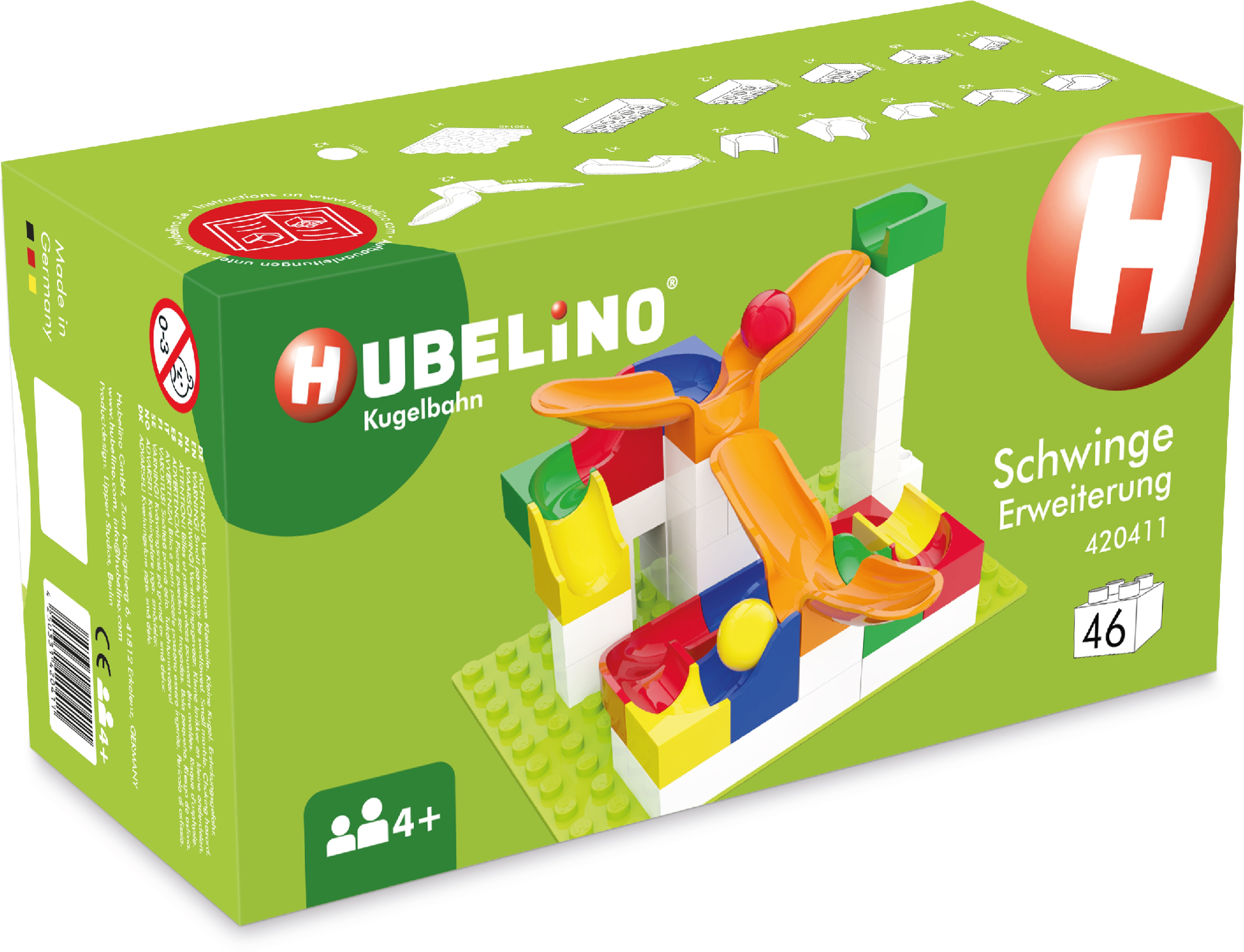 Byg vilde kuglebaner med denne gynge fra Hubelino. Hubelino kombinerer kuglebanedele med klassiske byggeklodser. Sættet indeholder 46 dele, deriblandt to gyngedele, så dine kugler kan køre afsted i forskellige retninger. Kombinér med andre kuglebanesæt fra Hubelino for at bygge en stor bane. Anbefalet alder: Fra 4 år