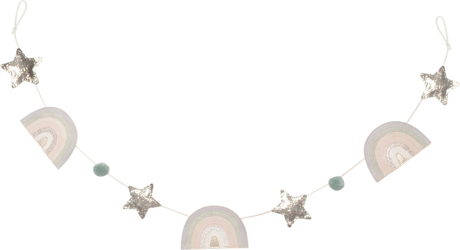 Guirlande med regnbuer, stjerne og pompomer.Alder: 3-8 år