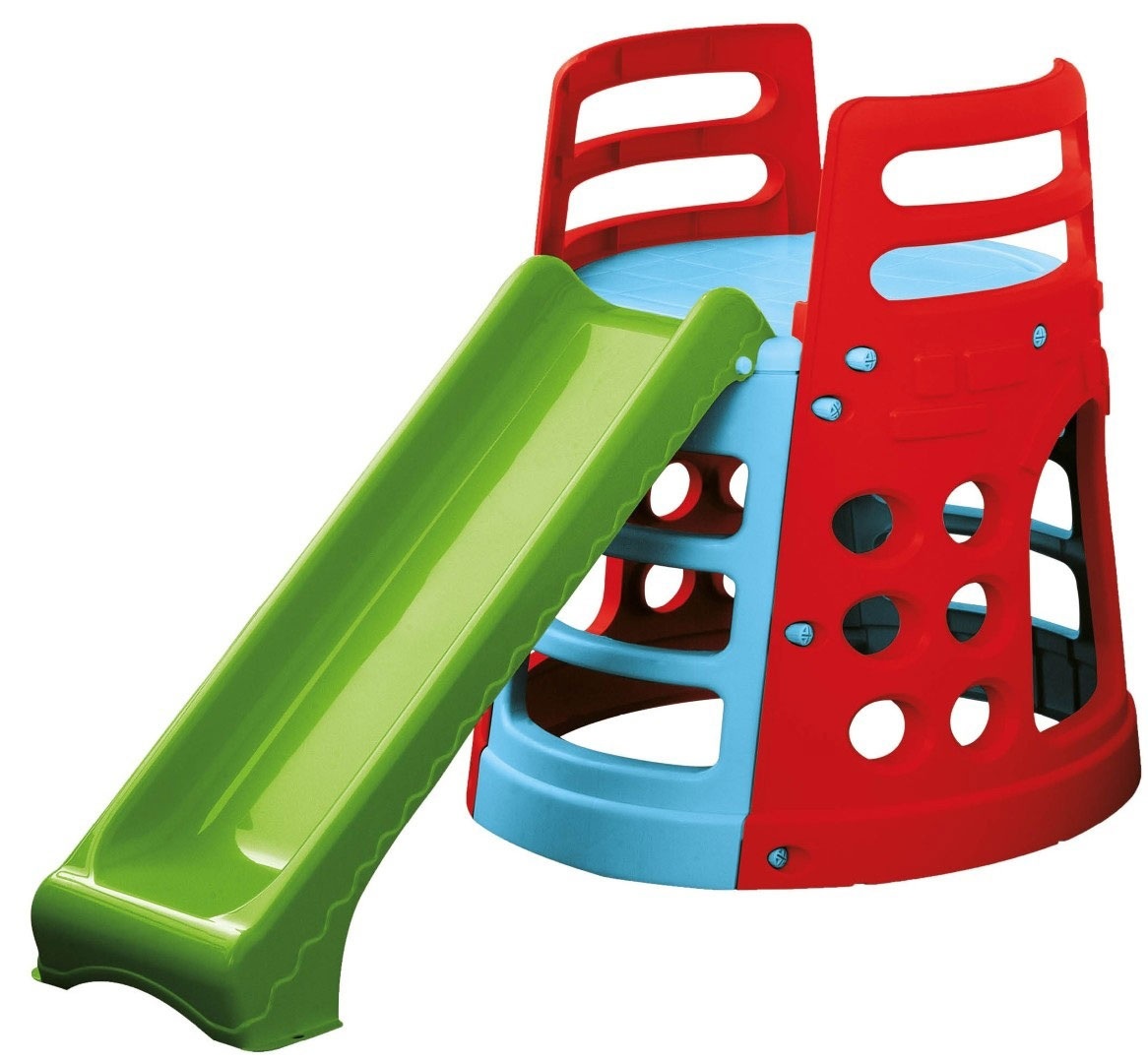 Aktivitets Tårn med masser af muligheder. Inviter alle dine venner og hav en fantastisk sommer med dette unikke legetårn i haven. Denne udendørs aktivitetstårn indeholder forskellige legemuligheder såsom at klatre, glide ned ad rutsjebanen og kravle genne