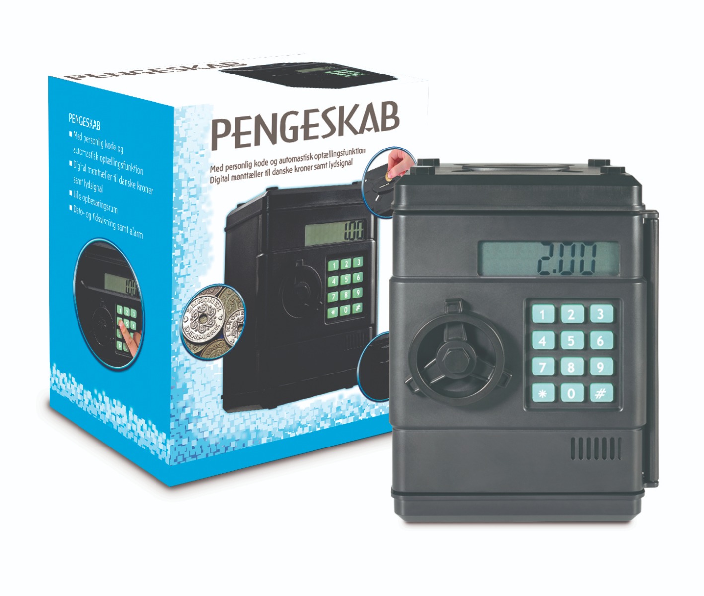 Dette flotte pengeskab er perfekt til både den sparsommelige fornuftsperson og den ærgerrige pengepuger. Med avancerede funktioner gør det opsparing sjovt og lærerigt.