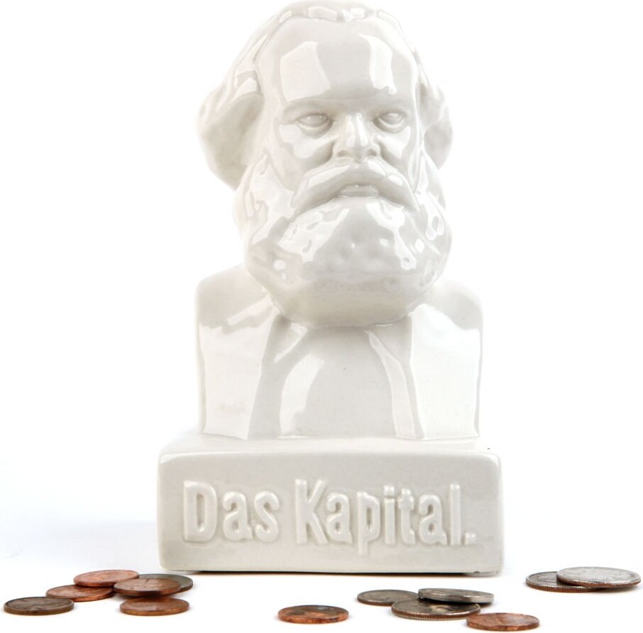 Designet inspireret af det ikoniske værk af Karl Marx, Das Kapital, gør denne sparebøsse til et samtalestykke, der tilføjer karakter til ethvert rum. Med sin robuste konstruktion og sjove design, er den perfekt til alle, der ønsker at kombinere funktionalitet med en smule humor.