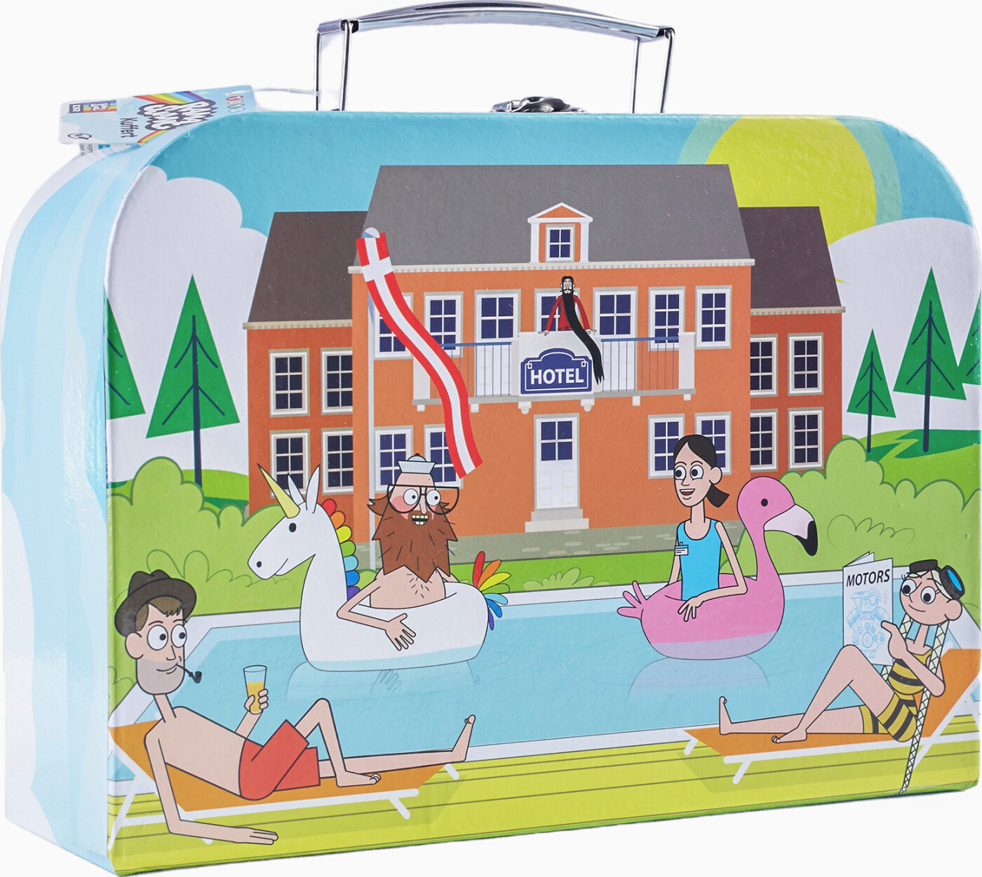 Ramasjang kuffert 25 cm.  Kufferter dekoreret med forskellige karakterer fra DR's børnekanal Ramasjang. På kufferten finder du bl.a. karakterer som detektiv Christian, Onkel Reje, Oda...