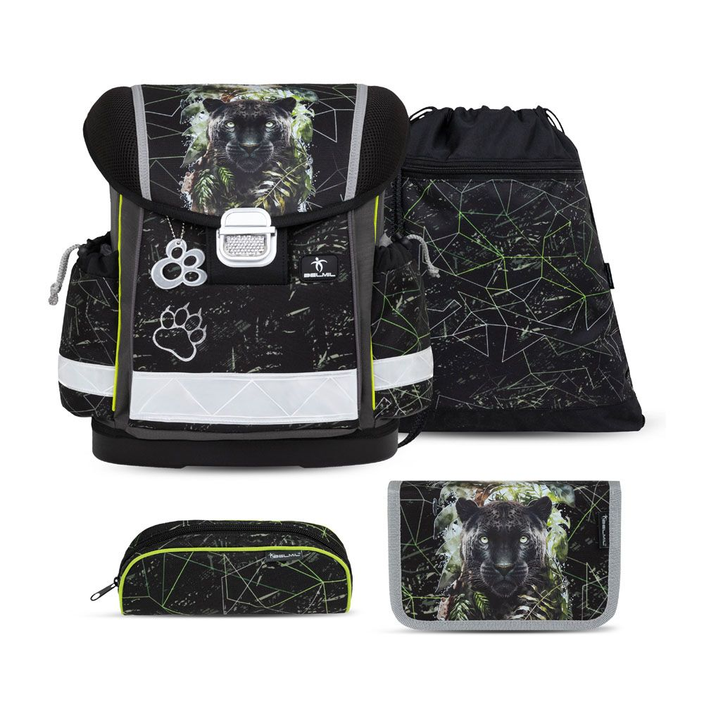CLASSY SET skoletaskesæt indeholder: - Skoletaske - 1 rektangel Penalhus (ufyldt) - 1 (blødt) Penalhus - Gymnastiktaske - Tidsplan - Nøglering FUNKTIONALITET - Ergonomisk skoletaskesæt til folkeskolen, 1. - 3. klasse - Meget let : vejer kun 930-990 g - Di