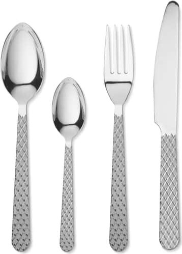 Det elegante design med rhombe mønsteret giver et moderne touch, som vil imponere dine gæster. Bestikket er fremstillet i højkvalitets stål, hvilket sikrer både holdbarhed og en skinnende overflade, der bevarer sit flotte udseende over tid.