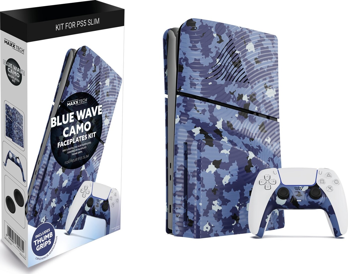 Maxx Tech Ps5 Slim Faceplates + Controller Faceplates - Blue Wave Camo