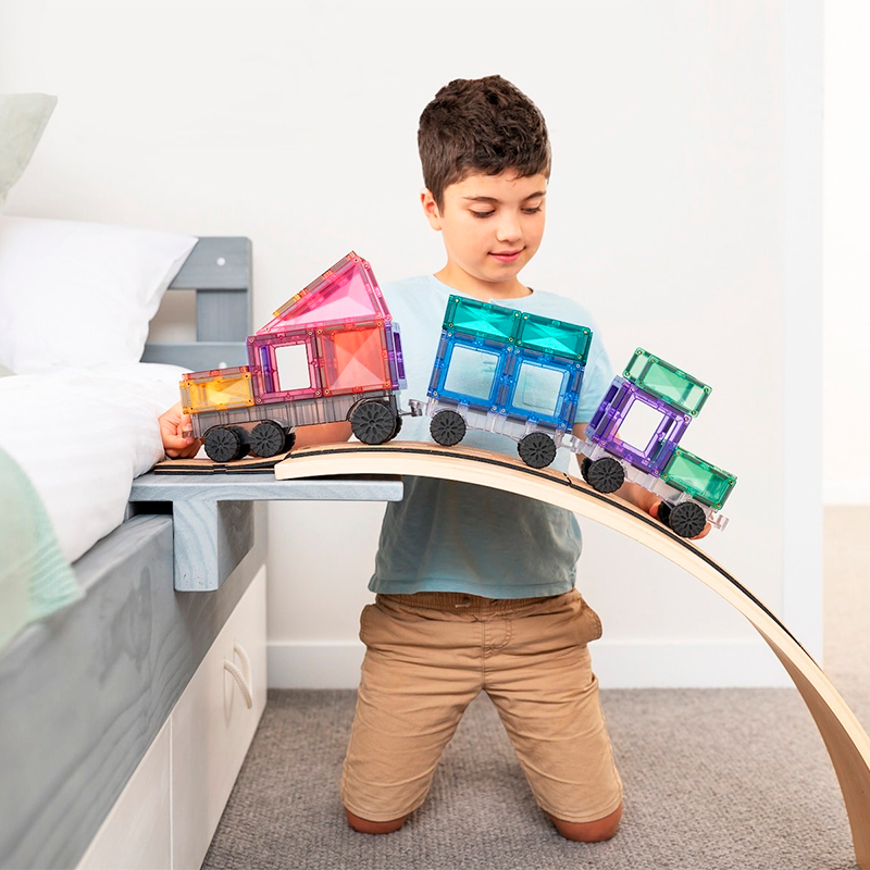 I 2019 startede to australske forældre Connetix. Deres børn legede meget med byggerier med magnetisk legetøj, og ideen til nogle endnu mere transperante byggefliser med magneter i opstod. Samtidig designede de en kuglebane, der kunne bygges sammen med magnet-delene, og så var de originale Connetix født. Connetix er magnetiske byggefliser, der er mere gennemsigtige og renere i designet end fx Magna-Tiles. De er meget finere at se igennem, når dit barn bygger i 2D op ad en rude eller på et lysbord. De har to magneter per side og er et perfekt match til Magna-Tiles og Cleverclixx, men passer desværre ikke til Magformers.